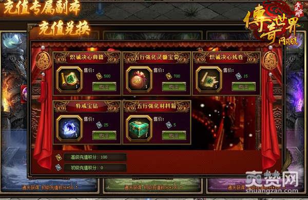 《传奇世界网页版》的另一个重磅更新就是上线了充值副本商店,只要玩家通关充值副本可获得初级充值积分或高级充值积分,即可在【充值副本-充值副本商店】中购买炽诚决心典籍、五行强化灵髓宝袋等道具!玩法多样,等你来挑战!