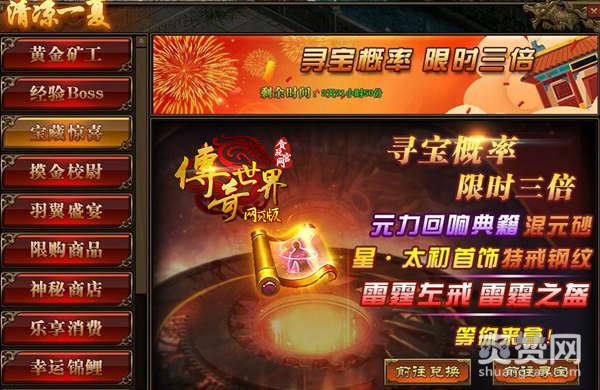 前方高能来袭!《传奇世界网页版》山鸡哥的最爱出现了!活动期间,玩家寻宝概率翻倍!传世灵器、传世灵甲,雷霆之盔以及雷霆左戒的雷霆套装,将会有极高的几率掉落!据说山鸡哥最喜欢的就是雷霆套装啦!山鸡同款你值得拥有!