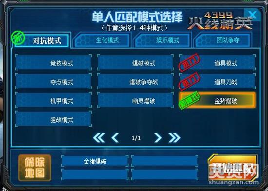 在主界面主模式选择——对抗模式,子模式选择——金猪爆破模式。然后点击“开始游戏”进行匹配。