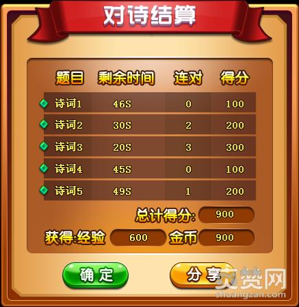 在玩家对诗正确的情况下,剩余时间越多,玩家获得的经验值就越多哦!