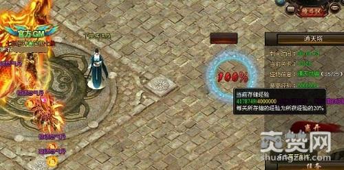通天塔的前10层可以免费进入,越往后经验越高,从10层开始进入下一层就需要花费一定元宝才行。此外,在通天塔的每层大家还可获得一个额外的储存经验,相当于本层所获经验的20%,当储存经验达到400W时,大家便可以点击界面的图标获取。