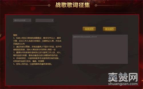 为什么要做战歌征集,而不是直接邀请音乐公司作词呢?首先,51游戏一直是以玩家为本,从玩家中来到玩家中去...(听起来有点熟悉),其实玩家所想所写,才是真正能够反映玩家所需的东西,总喊着热血情谊,但是什么样的故事能够真正走进玩家的内心,恐怕只有玩家自己才能知道。而且,红月传说的玩家真的很有才华,作词作曲不在话下,早前在征集头号玩家俱乐部成员的时候,通过申请文章,已经可见一斑,此次歌词征集,可是拭目以待了。