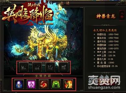 曾经的翅膀幻化,已经让人大呼为铁血大陆增加了一条靓丽的风景线,而今坐骑幻化横空出世,给大家带来更大的惊喜!强大的属性加成,霸气的坐骑幻化外形,简直又成了大家膜拜的对象。3转开启坐骑幻化,点击右下角“坐骑”--“幻化”可进入坐骑幻化页面!此次推出4种幻化坐骑,消耗相应坐骑幻化道具可激活,激活后可获得强大属性加成以及拥有幻化外形。坐骑幻化可升星,升星需要消耗相应的坐骑幻化道具,可获得属性加成,当全部星级达到一定要求之后,可升级坐骑技能,只有已激活的坐骑技能才会升级,未激活的坐骑技能保持不变!