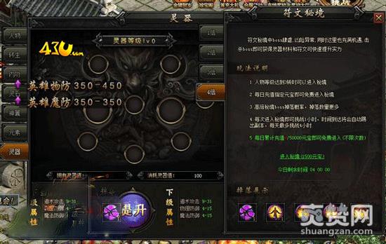 43u《血饮传说》中的灵器系统,是一个包含了“角色+英雄”双重养成灵器打造系统、四重难度副本的复杂整体。玩家靠灵器专属副本拿下灵器材料,用这些材料升级灵器,并能自由选择角色本身和英雄两大体系进行升级。这样的设定,一方面满足玩家日益强烈的挑战需求,另一方面则助力玩家突破实力瓶颈!