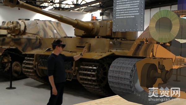 在此之外WG还尝试为各种坦克博物馆增加展示设备,英国的伯明顿坦克博物馆是全国最大的一家博物馆,然而他们却在引进一辆坦克的时候遇到了麻烦,这辆“突击虎”太重了以至于运输成本极为高昂。而机智的WG则灵机一动,既然运输困难为何不把这辆突击虎电子化呢?作为军武建模界的“大拿”WG自然义不容辞的承担起了这个重任,从寻找图纸到考据数据这一切都做的一丝不苟,并通过微软的HoloLens和谷歌Tango技术将突击虎的建模成功AR化。最终伯明顿博物馆获得了WG提供的突击虎专用AR演示设备,旅客只需佩戴头显即可从不同的角度观察到这款精致的坦克建模,而这个AR建模甚至还能再显示器中以慢动作的形式展现380MM口径主炮的开火瞬间,可以说是非常酷炫的高科技了!