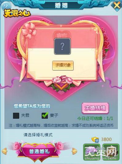 在《无限之心》中,你不仅可以找到一起并肩作战的好友,还可以邂逅一段浪漫的情缘。找到你心仪的对象向TA求婚,开启一段浪漫而特别的婚礼,在全服玩家的祝福和见证之下结为百年之好,从此和TA一起携手冒险天涯相随!结婚后系统会给你们发放结婚证书,并且能获得婚房!玩家选择的婚礼模式不同,婚房的品质也不相同。婚房可以为你们带来属性和战力的提升,并且可以通过亲密度来提升婚房的阶级。