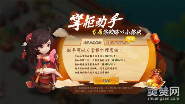 经商助手分为两档,高级工坊助手和豪华工坊助手。高级工坊助手为30一个月,其功能有: