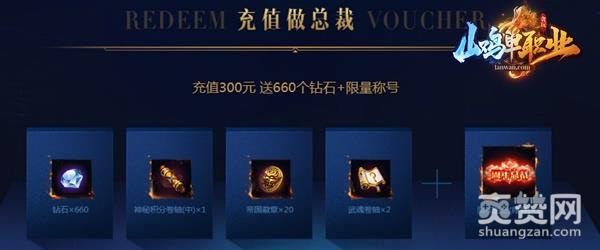 成为总裁的方式很简单,只要在《山鸡单职业》“周年总裁”活动页面一次充值满300,就可以领取总裁大礼包,让你即刻化身总裁,和山鸡哥一起在江湖闯荡!总裁大礼包不仅有总裁称号,还有666钻石和惊喜福利。