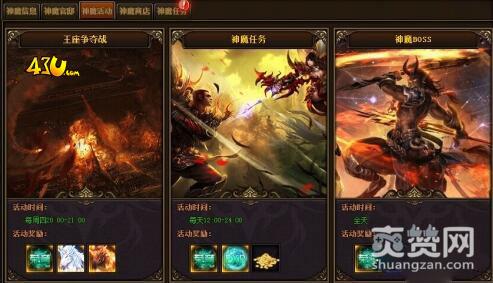 神魔阵营是43u《传奇世界》陆续开放的新玩法之一,玩家可以选择神族或者魔族一方阵营加入。神魔活动是阵营的主要玩法,神魔活动包括王座争夺战、神魔任务跟神魔BOSS。