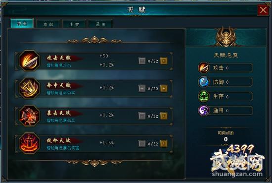 天赋分为攻击、防御、生存、通用,都可以通过天赋点可以自由升级。