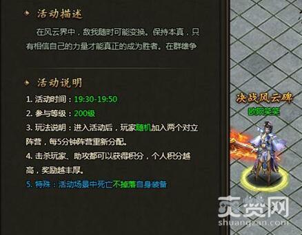 此外,在923yx《灭神》的决战风云碑中大家还需要特别注意的是,在战场中死亡将不会掉落装备,所以大家可以放心的在决战风云碑中一展身手!究竟谁将是这一届的卫冕之王呢?快来923yx《灭神》决战风云碑闪耀出自己的光芒吧!