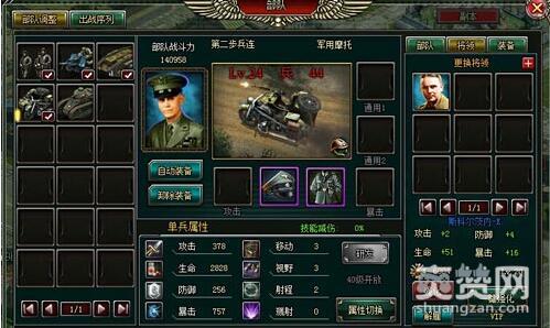 附加属性,将领达到一定等级后获得,紫色以上将领有3条,蓝色的只有2条。相同将领不同级别的其数值也是有差异的。附加的属性有基础属性,就是攻防血爆之类的。也有特殊属性,如闪避率,反击率等等,这些有特殊附加属性的将领是以后打造各种专用部队所必须的。还有一点必须要注意的是将领的兵种限制,有的将可以带任意部队,更多的只能带指定的部队,千万不要招了很多将领却不能全部用上。