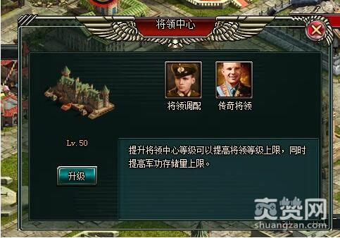 司令部是玩家的主城,主城级别即是人物级别,随着主城的提升游戏中会增加很多新的元素,所有其他建筑级别不能高于主城级别。司令部升级受战役进度限制。商城可以购入道具,装备,将领和兵种。商城等级影响高品质商品的出现。民居为战争提供银币的资源支持。
