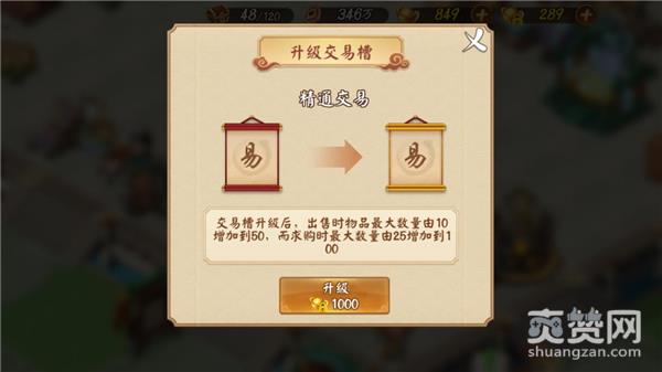 因为交易手速慢被别人抢占先机?求购回应太少让人扫兴?这一切只需要升级交易槽就能轻松解决你的烦恼。花费元宝升级后,出售物品最大数量由10增加到50,而求购最大数量由25增加到100。资源屯库不用愁,市场垄断不是梦,发家致富就在此刻。