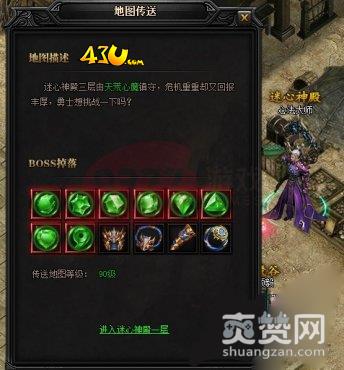 43u《蓝月传奇》中玩家可以到盟重省找到心法大师通过他的传送进入迷心神 殿中,NPC的具体位置是盟重省(122,95)。迷心神殿一共有三层,心法大师将会 传送玩家进入到迷心神殿一层中。神殿一层、二层都是一些小怪。玩家可通过传 送阵进入到下一层,迷心神殿三层由BOSS天荒心魔镇守。天荒心魔等级为240级, 血量也算是厚实。