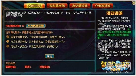 活动每日提供5次游历三界的机会。若剩余挑战次数少于5次,隔日刷新为5次;剩余挑战次数大于5次,则隔日挑战次数不变。