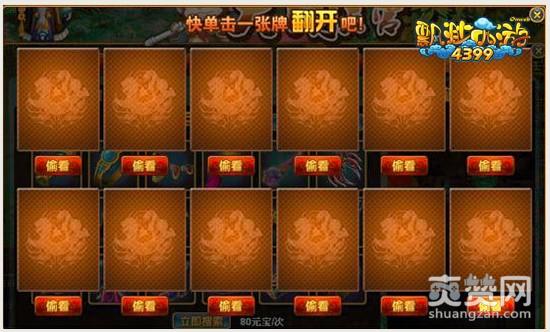 使用立即搜索之后,会出现翻牌界面,每张牌都提供偷看功能,偷看需要消耗元宝,并且会按偷看的次数依次递增。