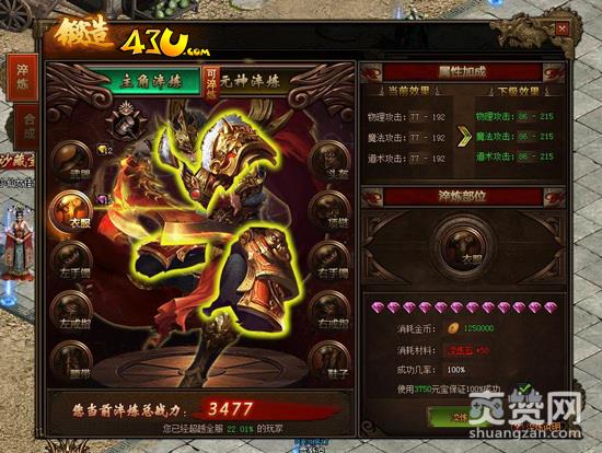 2.蓝钻和紫钻淬炼100%成功,黄钻淬炼有一定几率失败,可通过消耗元宝保证成功。