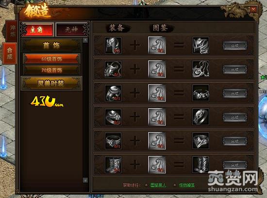 1.根据合成公式,拥有相对应的装备及图鉴,即可合成装备;