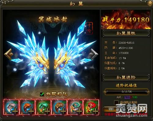 如图加战力多的翅膀装备,但必须等级要足够高才可以。