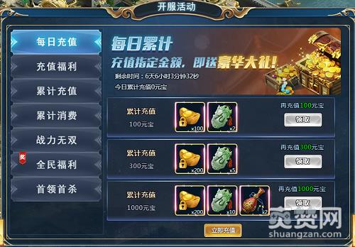 【活动内容】:每日达到指定的累计充值金额,即送豪华大礼!