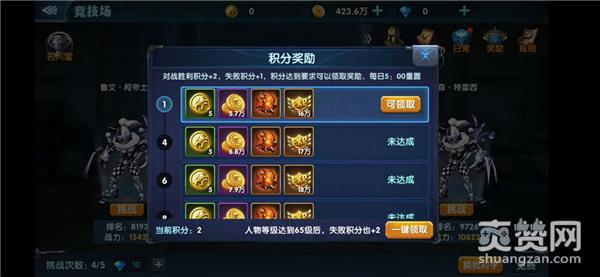 战斗胜利获取的积分到底怎么用?想必很多玩家都会有这样一个疑问。其实,获取的积分可以用来完成竞技场日常任务,达到相应的积分就可以解锁奖励。对战胜利积分+2,失败积分+1,各位实力弱小也不用担心忙到最后一场空。另外,人物等级达到65级之后,失败积分也+2,玩家只需要挑战结束之后等着拿奖励就行了。