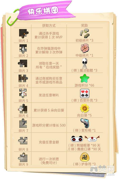活动规则:每种碎片最多获取一次,每种奖励也最多领取一次。