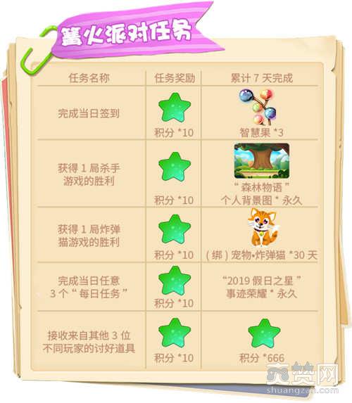 如果您累计超过7天每天都完成指定任务,我们还会按照派对的规定,给予您更加丰厚的奖赏!