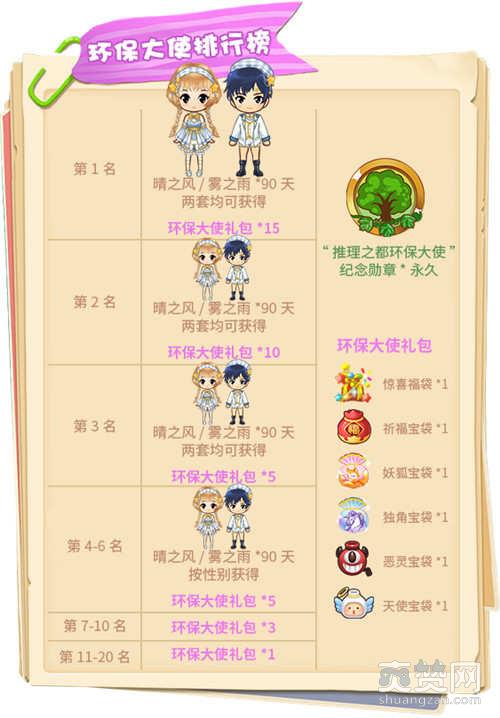 在活动结束后,每个战队累计获得“环保值”最多的前20名玩家将能够根据排名获得奖励: