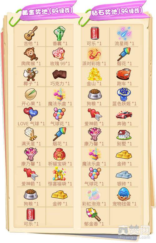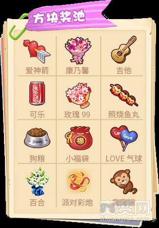 每局累计获得5份奖励:额外随机赠送一份:财富岛、别墅、爱吻卡