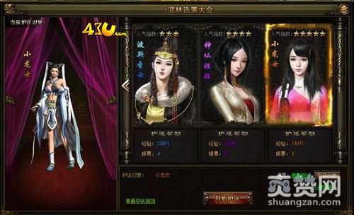 当然不同的美人奖励也是不同的,武林选美任务分为白、绿、蓝、紫、橙5个品质,任务品质越高完成时获得的奖励越丰厚,消耗胭脂粉即可刷新任务品质,胭脂粉可以在击杀个人BOSS掉落或在绑定元宝商城购买。