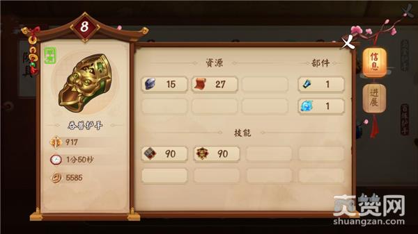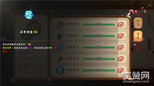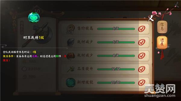 既然我们已经知道了方法,自然要对症下药。在《颤抖吧三国》中,时间就是金钱,所以对于高等级的探索材料我们不要考虑,一是时间成本过高与价值不成正比,二是容易囤积,基本每位玩家造高等级装备,都会自己去打探索材料。所以,我们将目光放在了等级偏低,但大部分玩家平时都需要的探索材料上。接下来,我们就可以准备配置装备了,武器选择月牙斧,拥有全队武将探索休息时间-5%的技能加成,护手选择吞兽护手,全队探索消耗时间-5%,武将需求都是近战,这样就能完成全员配置,达到25%的高额技能加成。
