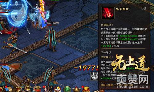 萝卜玩《无上道》游戏职业斩杀技能拥有独立的怒气条,怒气值将伴随时间逐渐增长,怒气值满后即可对目标进行释放斩杀。对于BOSS能够瞬间造成5倍以上的伤害,对于其他玩家能造成翻倍伤害,同时几率附加百分比生命上限的伤害效果。技能伤害肉眼可见的BOSS血条减少,斩杀神技是争夺BOSS最后一击的最佳选择。