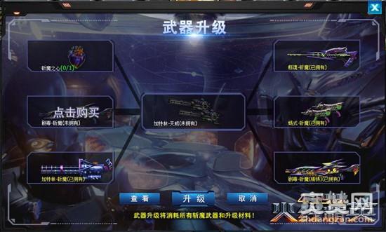②仓库里中的永久斩魔武器有一个“升级”按钮。点击后可以打开升级界面。