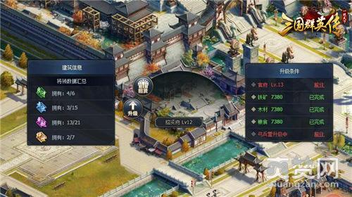 兵营包括步兵营、骑兵营、弓兵营三大兵营,提升兵营的等级能增加对应兵种的单次募兵量和容量,能快速补兵,是杀敌制胜的关键。训练场包含了校场和训练营,能给上阵将领提供强大的属性加成,是提升实力的一大助力。天机府可提供大量科技帮助,通过研究科技可提升武将属性、兵种实力、建造加速、生产资源加速等等强力辅助效果。再不济就通过外使院借兵,各种手段都能实现真正意义上的军力强大。