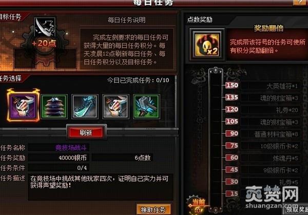 任务系统为贯穿整个游戏剧情的一个系统,玩家可以在做任务的同时体验死神的整个剧情!《死神狂潮》的剧情完美的还原整个死神剧情,玩家可以在玩游戏的同时将自己代入到整个剧情当中去,可以根据自己的喜好来处理游戏的进程!主线任务,根据主角的等级开启主线任务。开启等级,主角在完成36级主线任务后开启。每日任务每日任务中完成目标任务可获得额外的积分,当积分达到奖励要求则可领取满足要求的奖励。每日任务每天最大可完成10个任务,玩家可根据积分来选取最合适的任务挑战。