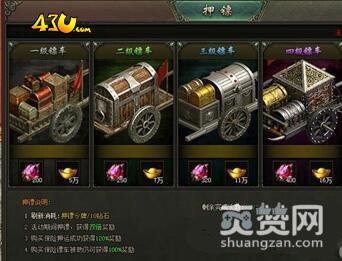 玩家们在刚进入《热血战歌之创世》时,会看到一批又一批汉子守护着马车前进,这就是传说中的押镖。目前在游戏中有五种等级的镖车,奖励依次递增,但即便是最“便宜”的一级镖车,产出的神石碎片和元宝数量也是非常诱人的。在真正押送之前需要先刷新一下,刷新需要消耗押镖令牌/10钻石,如果担心自己的镖车会被劫,可以购买保险。购买保险押运成功获得120%奖励,购买保险车被劫仍可获得100%奖励!