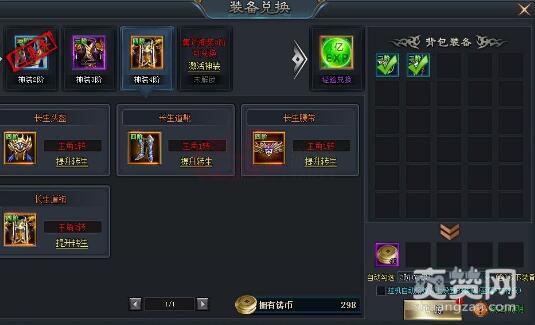 在923yx《武动苍穹》装备熔炼界面的上方有一个装备兑换图标,大家可以在此界面使用铸币兑换物品。铸币可兑换的物品除了神装装备外,还可以兑换经验。不过需要注意的是,部分神装装备以及经验值的兑换需要角色达到相应转生等级方可开启。