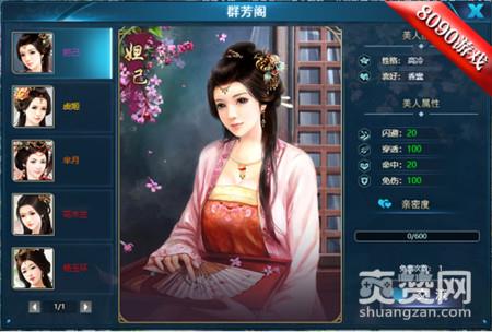 在内城的左上角“群芳阁”的建筑可以进入群芳阁页面,在群芳阁中,有很多的美人,我们可以根据自己眼光去选择自己喜爱的美人。