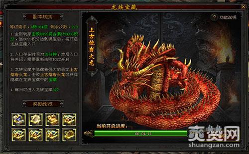 在萝卜玩《英雄合击》里,龙族宝藏是一个公共区域性的副本,这个副本里藏有一条强大的恶龙,它身上携带了诸多宝藏,等着各位勇士来抢夺。