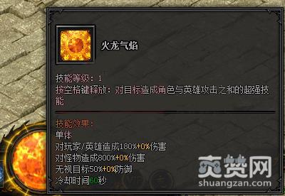 其中,选择战士英雄的玩家,可使用破魂斩的超级技能;选择法师英雄的玩家,可使用火龙气焰的超级技能;选择道士英雄的玩家,可使用噬魂沼泽的超级技能。这些超级技能效果都是一样的,只是技能特效不一样而已。