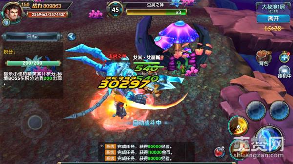 进入副本后,是一个很大的地图,里面有很多的怪物,怪物等级分为普通、小头目、精英。其中普通怪物给予的积分为1,小头目与精英为5,玩家需要在指定的时间内达到指定的积分才能挑战BOSS获得最终的奖励。