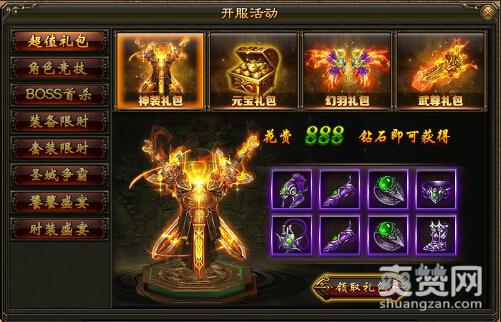 活动期间内玩家可花费少量钻石购买丰厚礼包,礼包可快速提升装备等级、翅膀阶数,更有海量元宝任性使用。