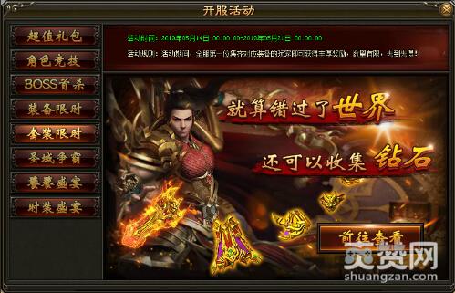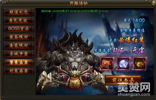 开服前七天,每天14:00饕餮巨兽降临,击杀必爆红装,另有海量钻石元宝爆出。