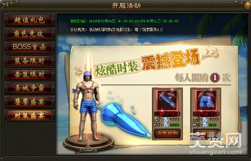 开服前七天可购买炫酷绝版时装,每个玩家限购一次