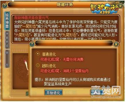 普通进化一次可提升一条尾巴,越阶进化一次可提升两条尾巴;当进化到八尾或九尾时,可进化至灵狐仙子。普通进化不需要消耗任何东西。