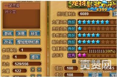 所以,如果想节约成本的话,越早把灵狐的资质和成长洗到100%越好;当然,如果后期洗资质时,运气好的话还是能很快到达的!
