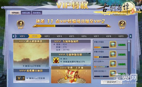 在《古剑奇谭2网页版》中,升级免费送VIP16。在游戏里通过提高等级和其他任务获取经验点,即可开启VIP特权系统,免费获得,直送VIP16!每升一级,都会获得一种神器外加30次的挖宝。而且成为VIP后不仅有专属技能,杀怪还有经验加成,特权海量豪礼更不用说!你遇到过的游戏中假送VIP不存在的,快来游戏里领取你的专属VIP吧!