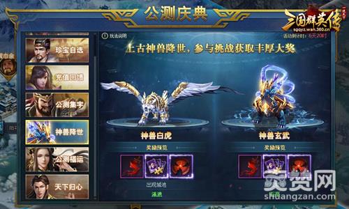 活动期间,360《三国群英传一统天下》的世界地图城池上会刷出神兽白虎、玄武两大神兽,主公需要派遣得力军团前往城池将它们击败,才能获得终极奖励。挑战神兽时,“单挑”会变成“乱击”,乱击时将优先选择敌国部队,在这个过程中很有可能在没遇到神兽的时候就先被敌国对手撕掉了,所以一定要务必小心。最后一刀击杀神兽的主公可获得击杀大奖,并且本国所有参战主公可获得参与奖,是不是超给力呢!