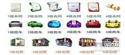 包括:1——6级合同、1——6级跑车、1——5级别墅、1——4级游艇等